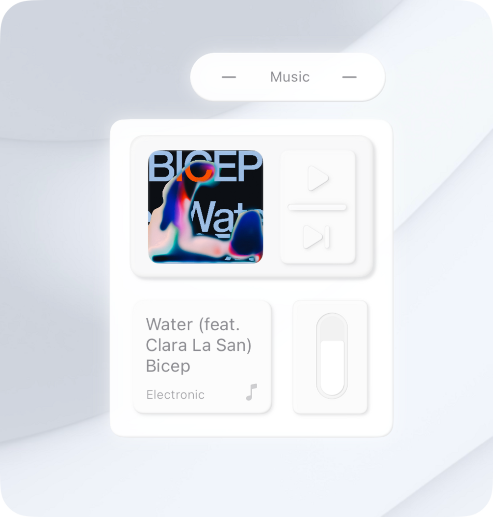-music: volume indicator on bottom right bar. can play/pause & skip music with shortcuts provided